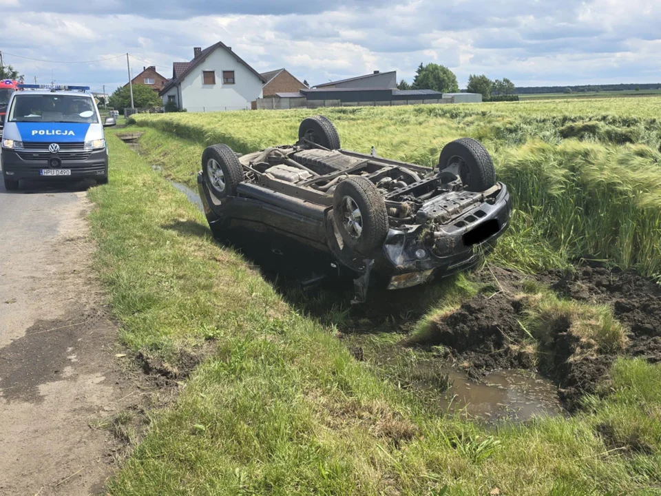 Policjanci będący na miejscu wypadku ustalili, że kierująca samochodem osobowym straciła panowanie nad autem, wjechała do przydrożnego rowu i dachowała.
