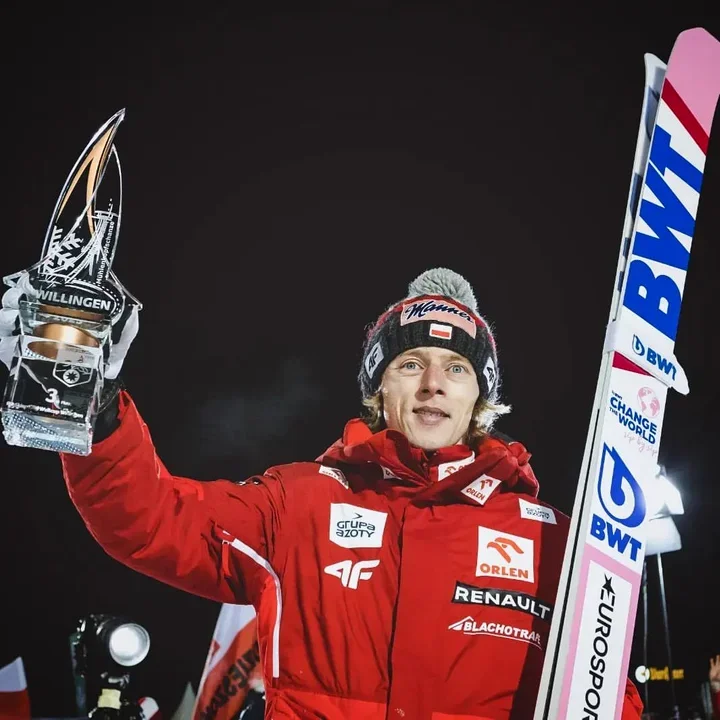 Autor: FB/Dawid Kubacki | Opis: Dawid Kubacki zajmuje obecnie drugie miejsce w tabeli PŚ. Bez wahania zostawił walkę o podium dla ukochanej żony.